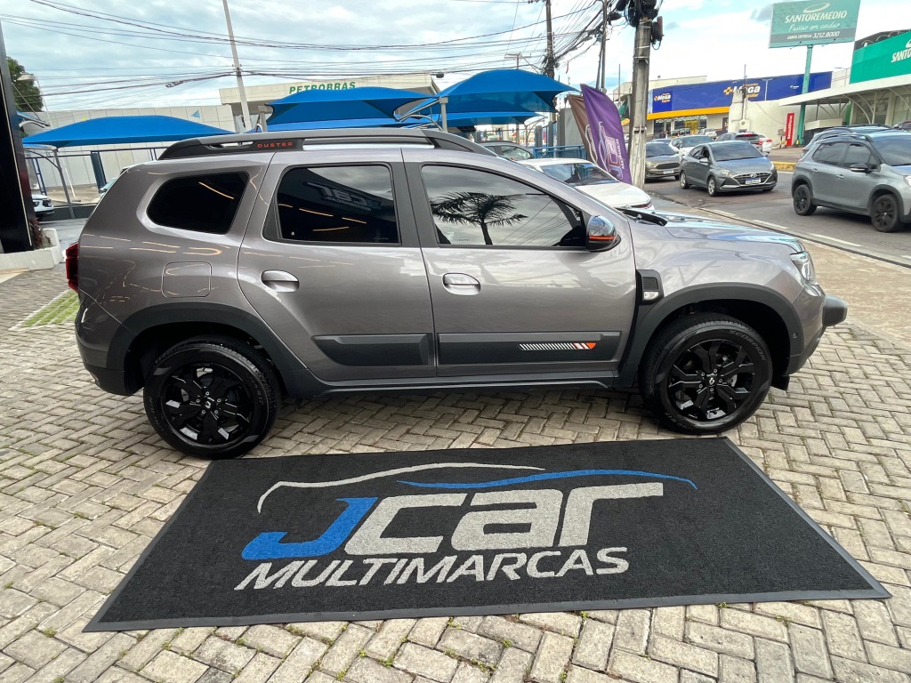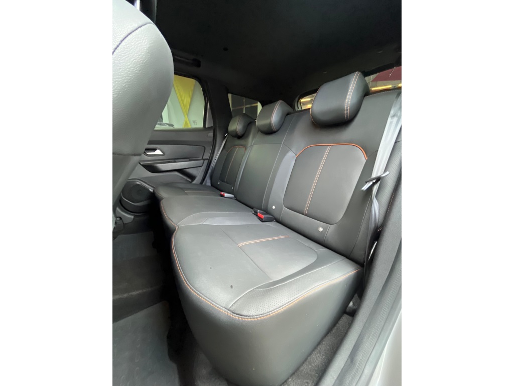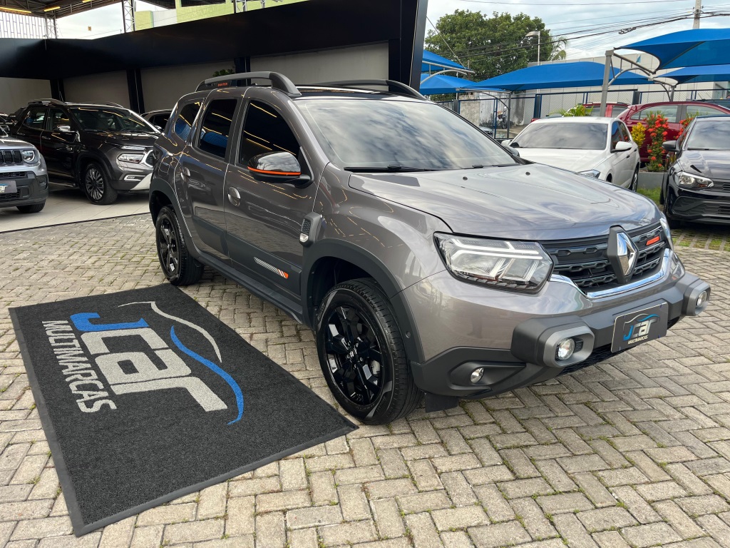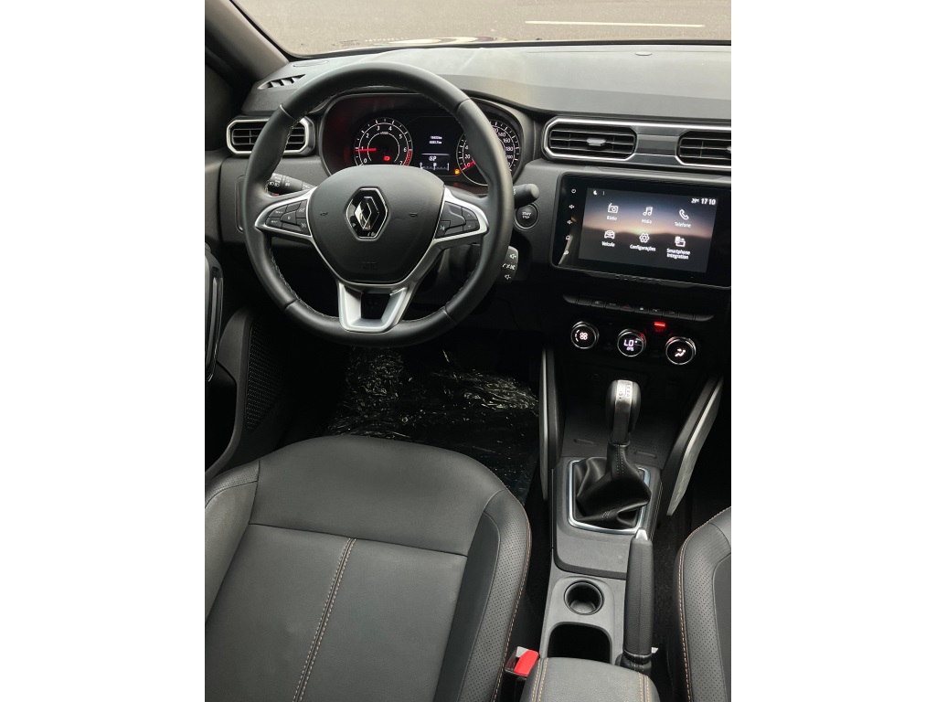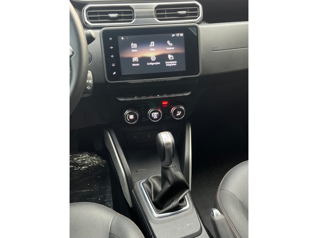 Renault Duster Iconic Plus 1.3 AT 2025/2026* Câmbio automático CVT de 7 marchas; * Direção elétrica;* Ar-condicionado digital e automático;* Bancos com revestimento premium (couro sintético);* Volante ajustável (altura e profundidade);* Banco do motorista com regulagem de altura;* Chave presencial (hands-free);* Start-Stop;* Capô com mola a gás e iluminção interna/porta-malas;* Sistema Easy Link Display Link 8" com Apple CarPlay e Android Auto;* Conexões USB e Bluetooth;* Indicador de temperatura externa e computador de bordo;* 6 airbags (frontais, laterais e cortina);* controle de tração e assistente de partida em rampa;* Sensor de chuva e de luminosidade;* Trava elétrica com fechamento automático;* ISOFIX para 2 cadeirinhas;* Câmera traseira + sensor de estacionamento traseiro;* Sistema Multiview (visão 360) com 4 câmeras;* Alerta de ponto cego;* Faróis de neblina LED; acendimento automático + função “Follow Me Home”;* Rodas de liga leve 17";* Alargadores de rodas, barras de teto e “skis” frontal/traseiro na cor Cinza Megalith;* Retrovisores externos em preto brilhante com detalhes em laranja;* Emblemas “Iconic” laranja na grade e barras de teto;* Teto bi-ton e antena shark;