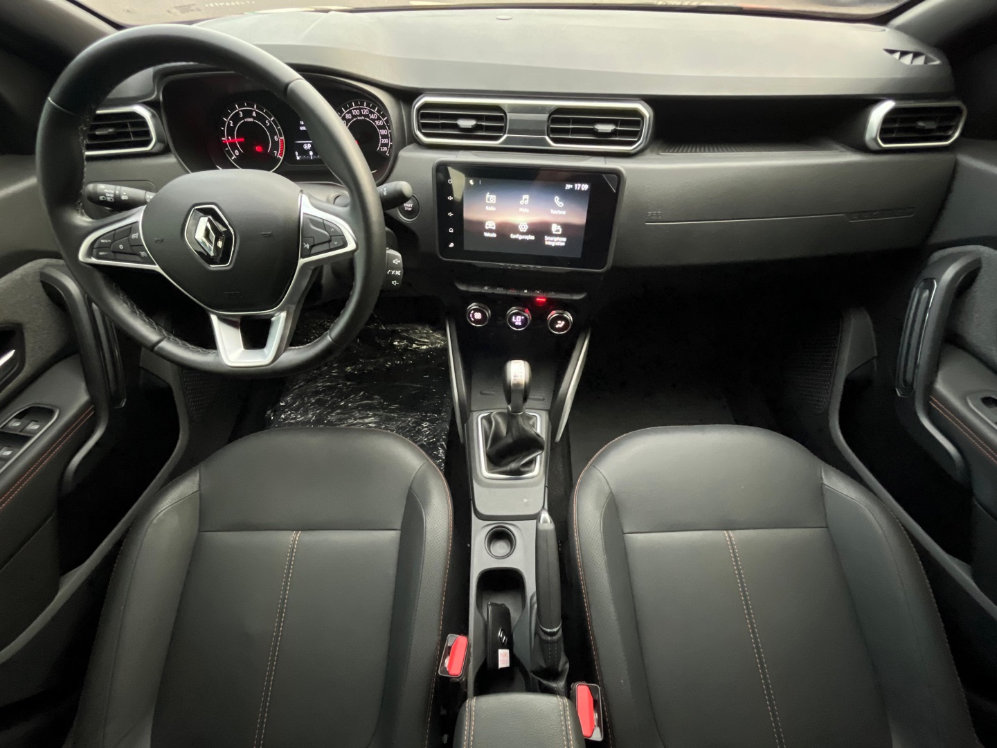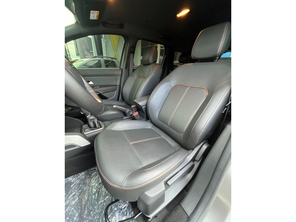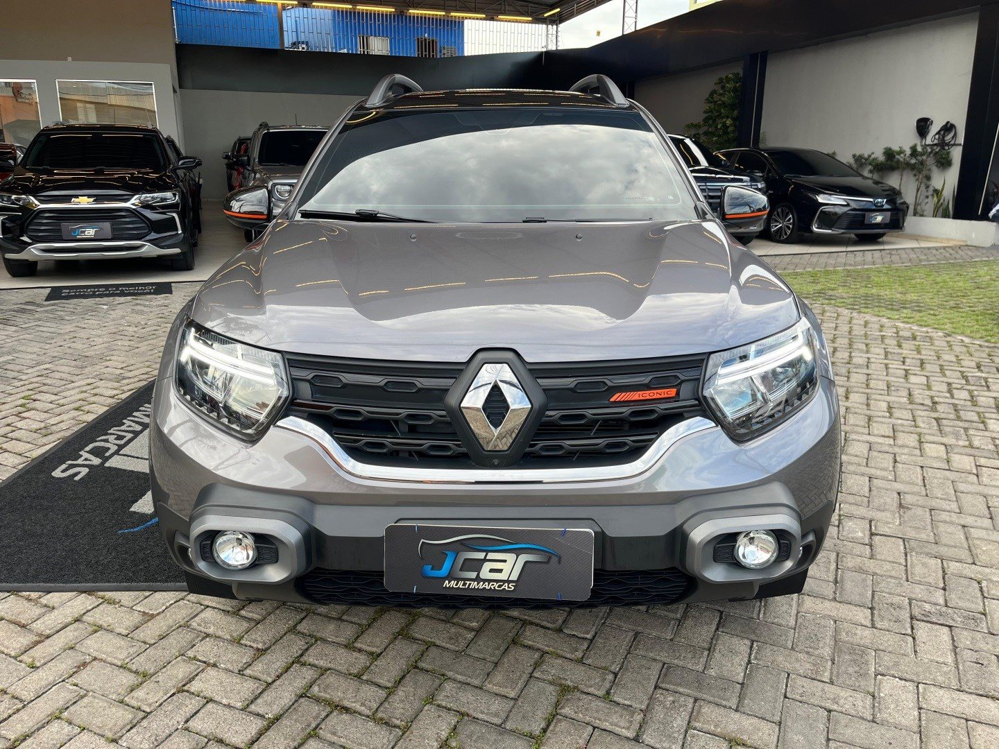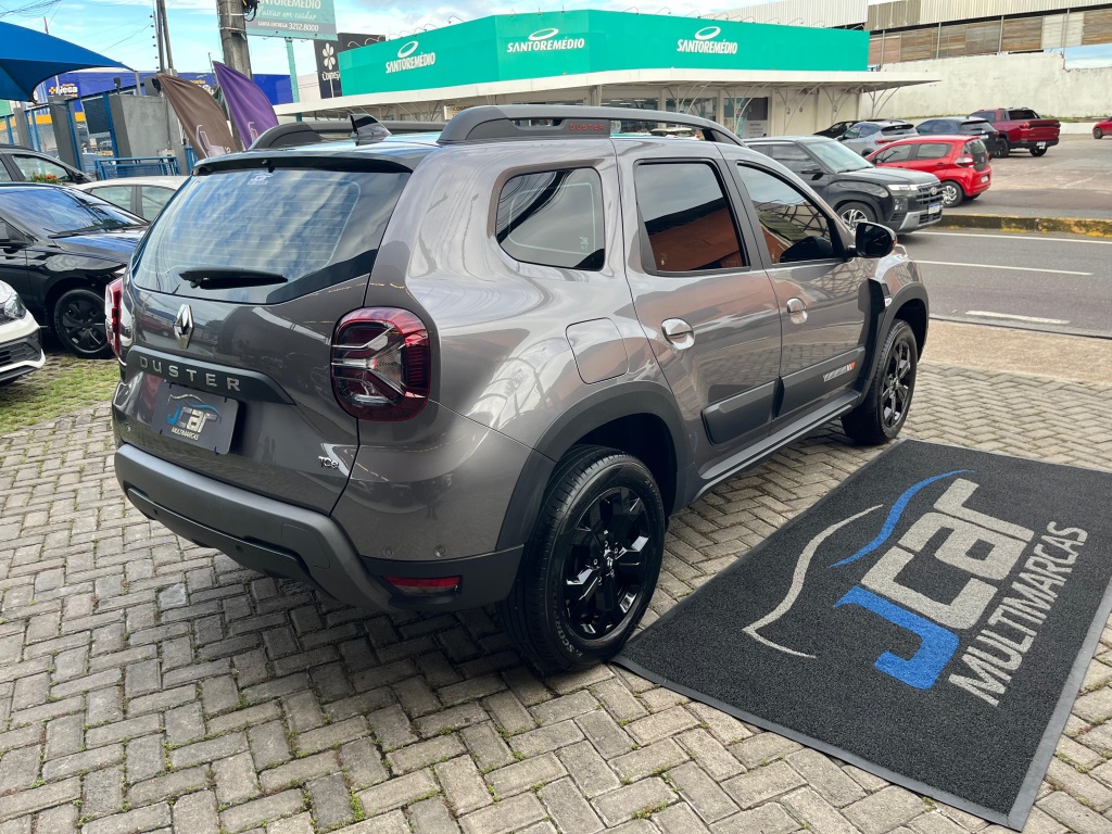 Renault Duster Iconic Plus 1.3 AT 2025/2026* Câmbio automático CVT de 7 marchas; * Direção elétrica;* Ar-condicionado digital e automático;* Bancos com revestimento premium (couro sintético);* Volante ajustável (altura e profundidade);* Banco do motorista com regulagem de altura;* Chave presencial (hands-free);* Start-Stop;* Capô com mola a gás e iluminção interna/porta-malas;* Sistema Easy Link Display Link 8" com Apple CarPlay e Android Auto;* Conexões USB e Bluetooth;* Indicador de temperatura externa e computador de bordo;* 6 airbags (frontais, laterais e cortina);* controle de tração e assistente de partida em rampa;* Sensor de chuva e de luminosidade;* Trava elétrica com fechamento automático;* ISOFIX para 2 cadeirinhas;* Câmera traseira + sensor de estacionamento traseiro;* Sistema Multiview (visão 360) com 4 câmeras;* Alerta de ponto cego;* Faróis de neblina LED; acendimento automático + função “Follow Me Home”;* Rodas de liga leve 17";* Alargadores de rodas, barras de teto e “skis” frontal/traseiro na cor Cinza Megalith;* Retrovisores externos em preto brilhante com detalhes em laranja;* Emblemas “Iconic” laranja na grade e barras de teto;* Teto bi-ton e antena shark;