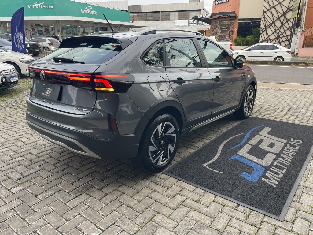 VW Nivus Highline 1.0 TSI AT TurboAno/Modelo: 2024/2025 * Transmissão: Automática de 6 velocidades;* Capacidade do Porta-malas: 415 litros;* Capacidade do Tanque: 52 litros;* 6 airbags;* Controle Eletrônico de Estabilidade (ESC);* Controle de Tração (ASR);* Assistente de Partida em Rampa (Hill Hold Control);* Frenagem Autônoma de Emergência (AEB);* Detector de Fadiga do Motorista;* Ar-condicionado digital Climatronic;* Carregador de celular por indução;* Sensores de estacionamento dianteiros e traseiros;* Sensores de chuva e crepuscular;* Volante multifuncional em couro com paddle shifts;* Sistema Kessy de acesso sem chave e botão de partida;* Painel Digital Active Info Display de 10,25 polegadas;* Central Multimídia VW Play Connect de 10,1 polegadas* com conectividade sem fio para Android Auto e Apple CarPlay;* Internet embarcada e aplicativos exclusivos;* Rodas de 17 polegadas;* Assistente de Permanência em Faixa;* Sensor de Ponto Cego;* Park Assist (assistente de estacionamento);* Travel Assist;